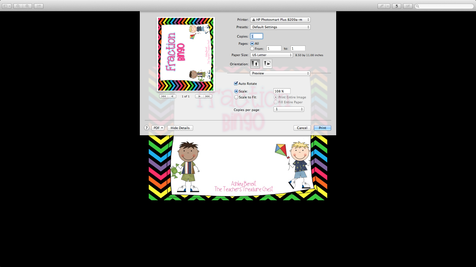 First..I am scaling down my cover pages. I am printing them at 60% instead of 100%. To do this, just go to settings, and print options, click on “Scale”…change it from 100% to whatever percent you wish.
